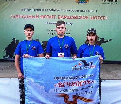 В составе сборного поискового отряда из Башкирии в экспедиции приняли участие члены поискового отряда "Вечность" МБОУ «СОШ № 8» М. Дарья, М. Ринат и Т. Егор.